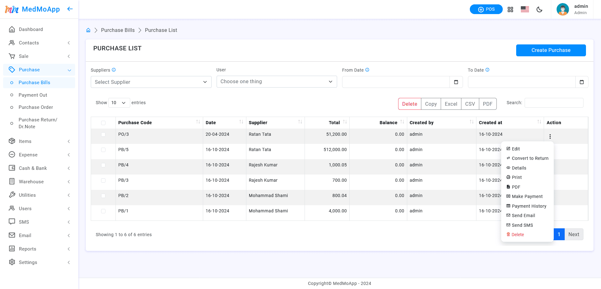 You can select supplier name, purchase code, reference number, for gst bill you can select state name of the supplier.